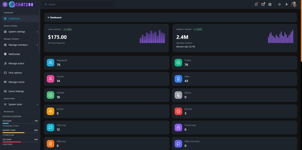 Full control over your chat environment As a self-hosted chat system, you get full control over your chat website. Enjoy the benefits of complete privacy, flexibility, and ownership.